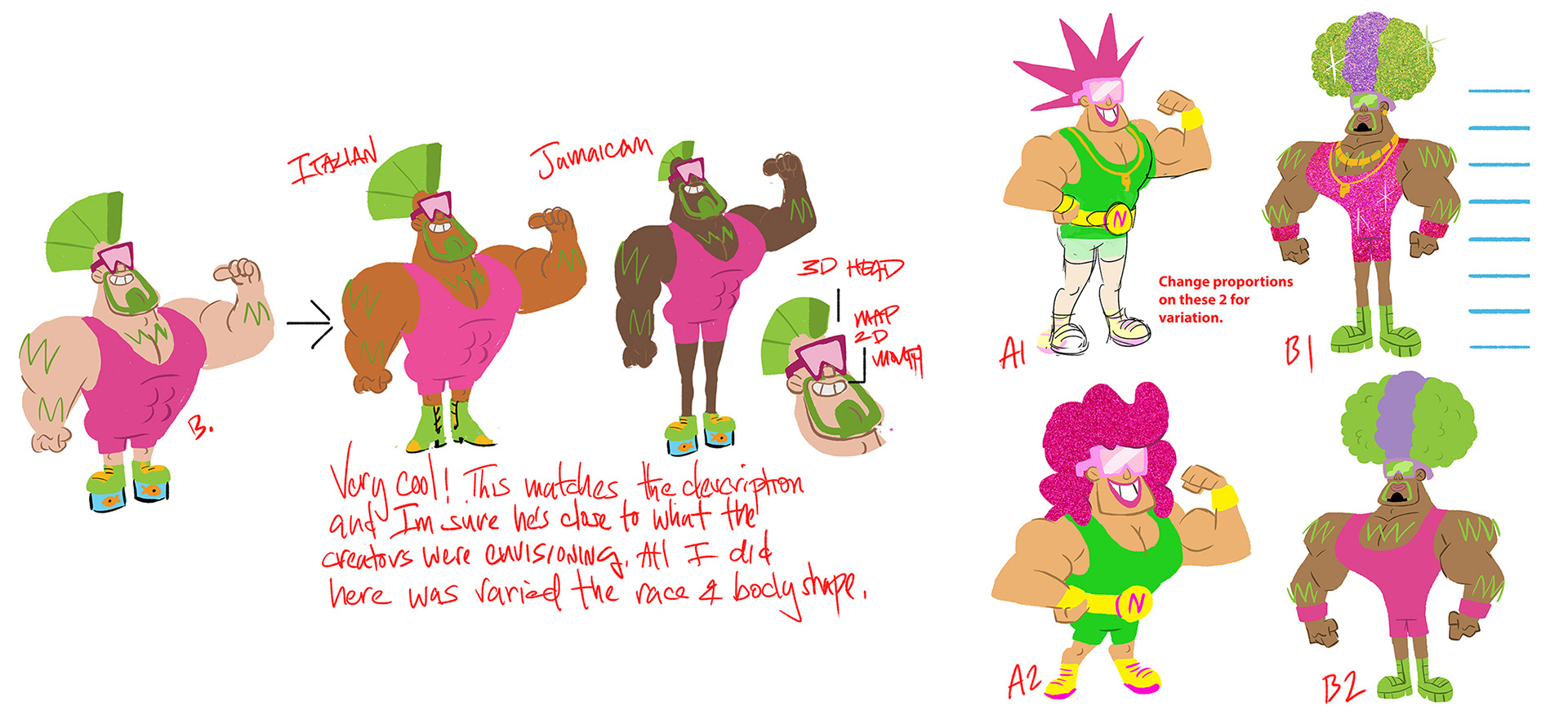 Mood board for the presentation to develop three 2-D styles for Pixar's Cars.